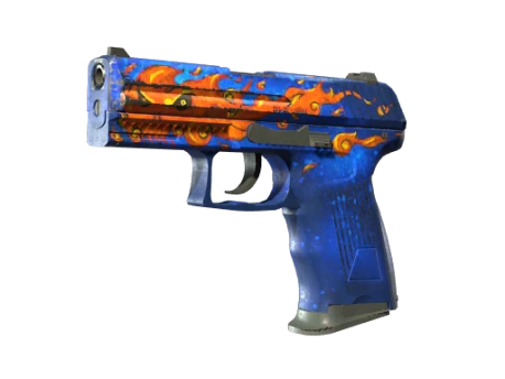 Точный и податливый пистолет P2000, произведенный в Германии, — хорошее оружие для первого раунда, которое особенно эффективно против небронированных противников. Изображение огненного существа в образном стиле нанесено вручную. Иногда игры с огнем приносят пользу