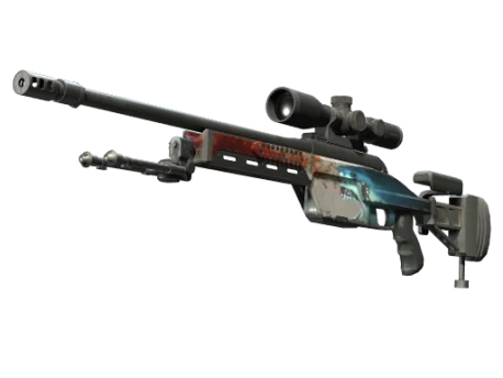 Снайперская винтовка SSG08 со скользящим затвором не наносит много повреждений, однако хорошее соотношение цены и качества делает ее отличным приобретением в первых раундах для перестрелок на дальних дистанциях. Рисунок с изображением акулы нанесен аэрографом.