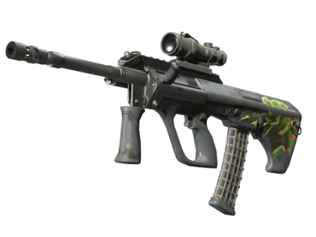 Мощная и точная винтовка с оптическим прицелом AUG компенсирует свою долгую перезарядку низким разбросом пуль и высокой скорострельностью. Рисунок в виде хамелеона нанесен вручную. Дьявол кроется в деталях