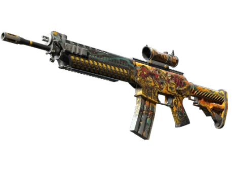 Эксклюзивный для террористов SG553 — хорошая альтернатива АК-47 с прицелом, помогающим в стрельбе на дальних дистанциях. На корпус нанесён узор из противогазов и рисунок оранжево-жёлтого потока, а поверх него — красный муравей из костей. Стань частью их мира
