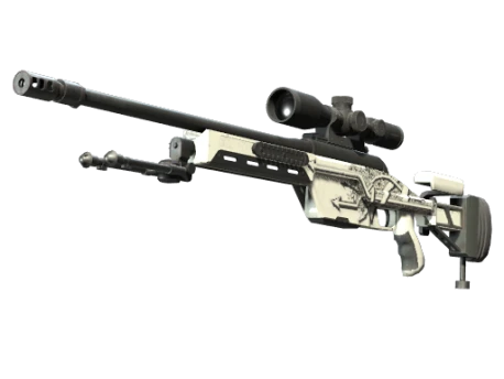 Снайперская винтовка SSG08 со скользящим затвором не наносит много повреждений, однако хорошее соотношение цены и качества делает ее отличным приобретением в первых раундах для перестрелок на дальних дистанциях. Раскрашено несмываемым маркером поверх белой основы.