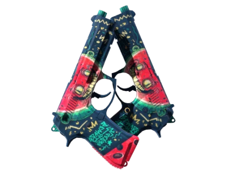 Одновременная стрельба из двух пистолетов Beretta с большим магазином уменьшает точность и увеличивает время перезарядки. С другой стороны, вы можете стрелять сразу двумя Beretta. На основу цвета морской синевы нанесены жутковатые изображения арбузов. Сладких снов...
