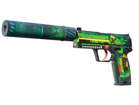 Пистолет USP, любимец игроков в Counter-Strike: Source, имеет отсоединяемый глушитель, который уменьшает отдачу, одновременно поглощая привлекающий внимание шум. На корпус нанесён рисунок зелёного монстра и других мотивов, вдохновлённых популярным стрит-артом. Глушитель покрыт перламутровой краской. X__X