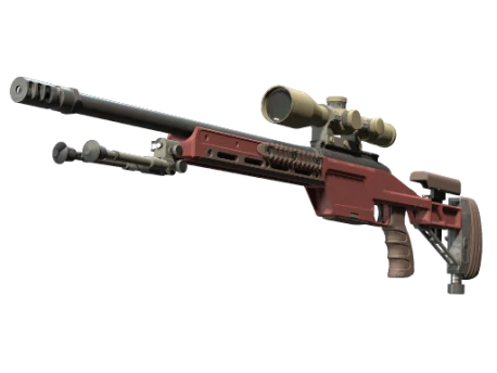 Снайперская винтовка SSG08 со скользящим затвором не наносит много повреждений, однако хорошее соотношение цены и качества делает ее отличным приобретением в первых раундах для перестрелок на дальних дистанциях. Рукоять окрашена в оливковый цвет, а затвор — в тёмно-бордовый. Обидно, что надписи затёрлись...