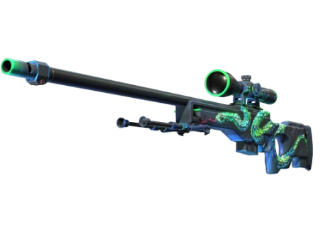 Печально известная снайперская винтовка AWP — очень опасное и очень эффективное оружие, которое легко узнается по характерному звуку выстрела и жестокому правилу: «один выстрел, один труп». Корпус покрыт чёрной основой, на которую нанесли броский рисунок зелёно-синей древесной гадюки. Губительная красота