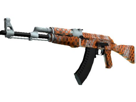 Мощная и надежная штурмовая винтовка АК-47 — одна из самых известных в мире. Наиболее смертельна стрельба короткими и точными очередями. Корпус покрыт белой основой, на которую нанесли оранжевый геометрический узор. Ваш арсенал заметней стал