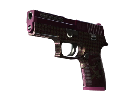Пистолет P250 — огнестрельное оружие с высоким темпом стрельбы и низкой отдачей, представляющее собой относительно недорогой выбор против бронированных противников. На корпус вручную нанесли шахматную клетку пурпурного цвета. Лучший сорт красного