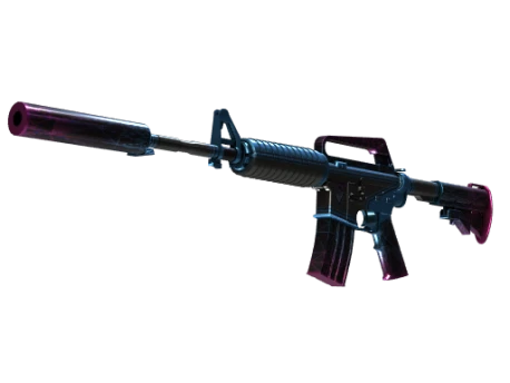 Бесшумный карабин M4A1 оснащен менее вместительным магазином, чем его аналог без глушителя, зато он обеспечивает более тихую стрельбу с меньшей отдачей и повышенной точностью. Частично окрашено в чумовые синий и розовый цвета. Тихий ретрофутуризм