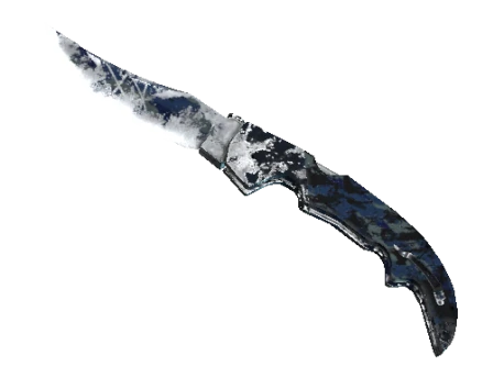 Переосмысление клинка-фальшиона с изогнутым лезвием. Голубая камуфляжная расцветка была нанесена с помощью аквапечати.