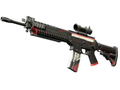 Эксклюзивный для террористов SG553 — хорошая альтернатива АК-47 с прицелом, помогающим в стрельбе на дальних дистанциях. Раскрашено вручную в черный, белый и красный цвета в стиле хай-тек. «Себастьен ищет меня, Валерия… Нам нужно спешить», — Чейс Тёрнер, дезертир Коалиции