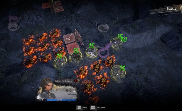 Используйте эффекты стихий для управления полем боя: поражайте током промокших врагов, поджигайте воспламеняющиеся участки и применяйте все возможные навыки.