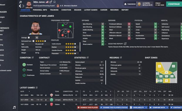 Станьте главным тренером и создателем баскетбольной династии. Впервые в серии представлена Баскетбольная Лига чемпионов — одно из главных континентальных соревнований, теперь полностью лицензированное со всеми официальными командами и игроками. Управляйте тактикой, финансами, подбором игроков и раздевалкой — каждое решение формирует ваше наследие.