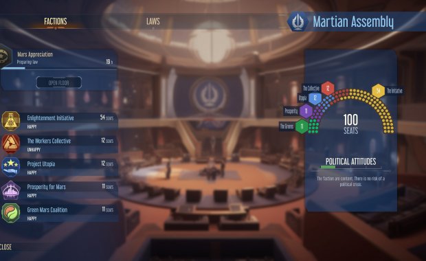 Марсианская ассамблея — уникальное нововведение. Принимайте законы, учитывайте потребности колонистов, добейтесь процветания и объявите независимость от Земли!